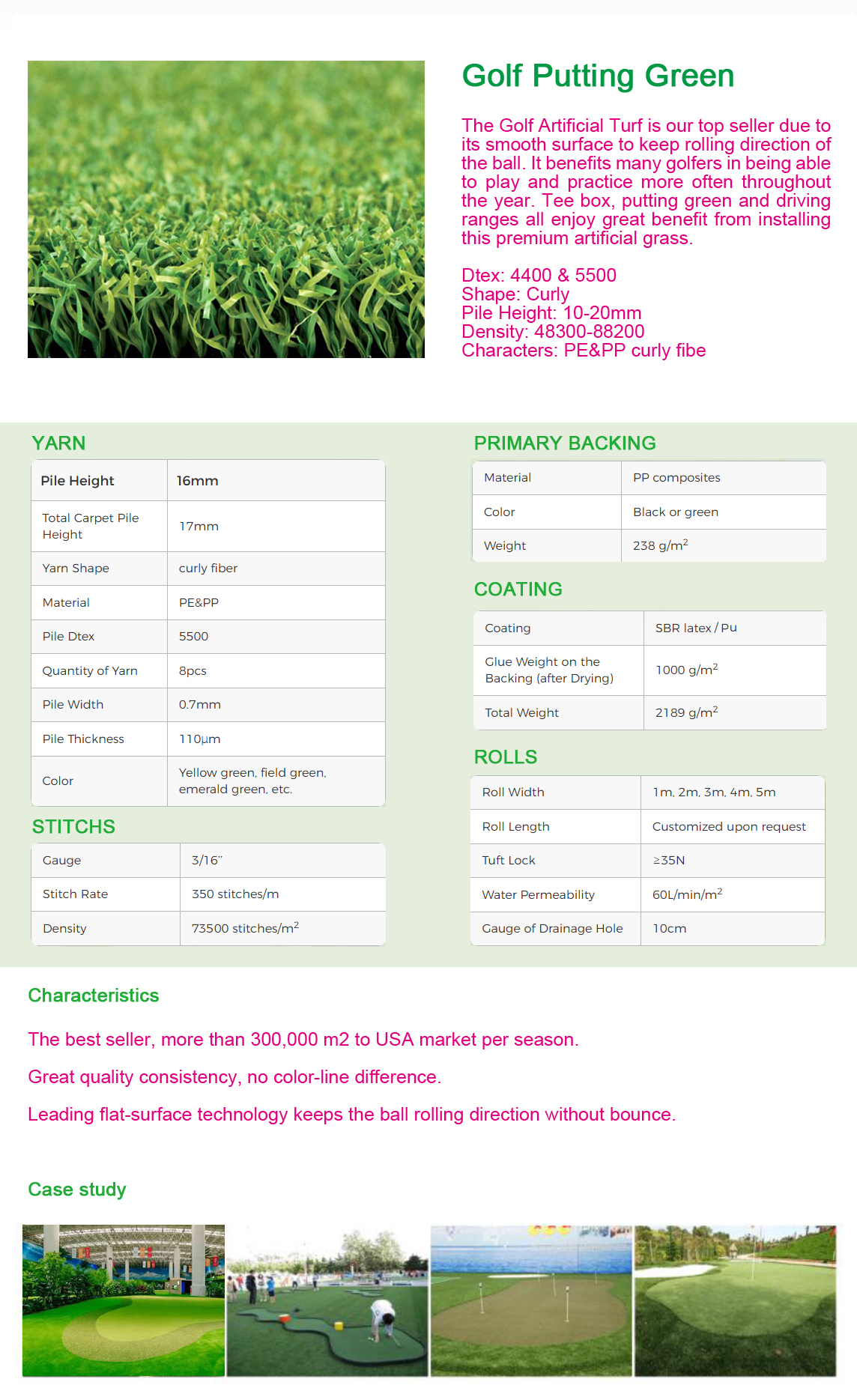 The best seller, more than 300,000 m2 per season, mostly send to USA.